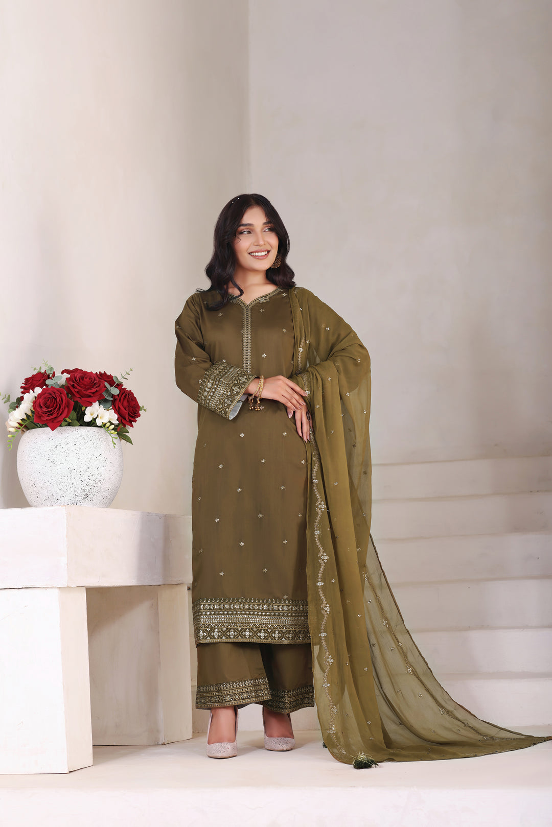Misty Plum| 3-Piece Stitched Suit Rang Leher #9